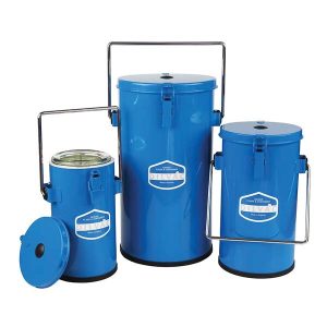 Insulated vessels used for storing and transferring cryogenic fluids like liquid nitrogen.